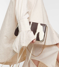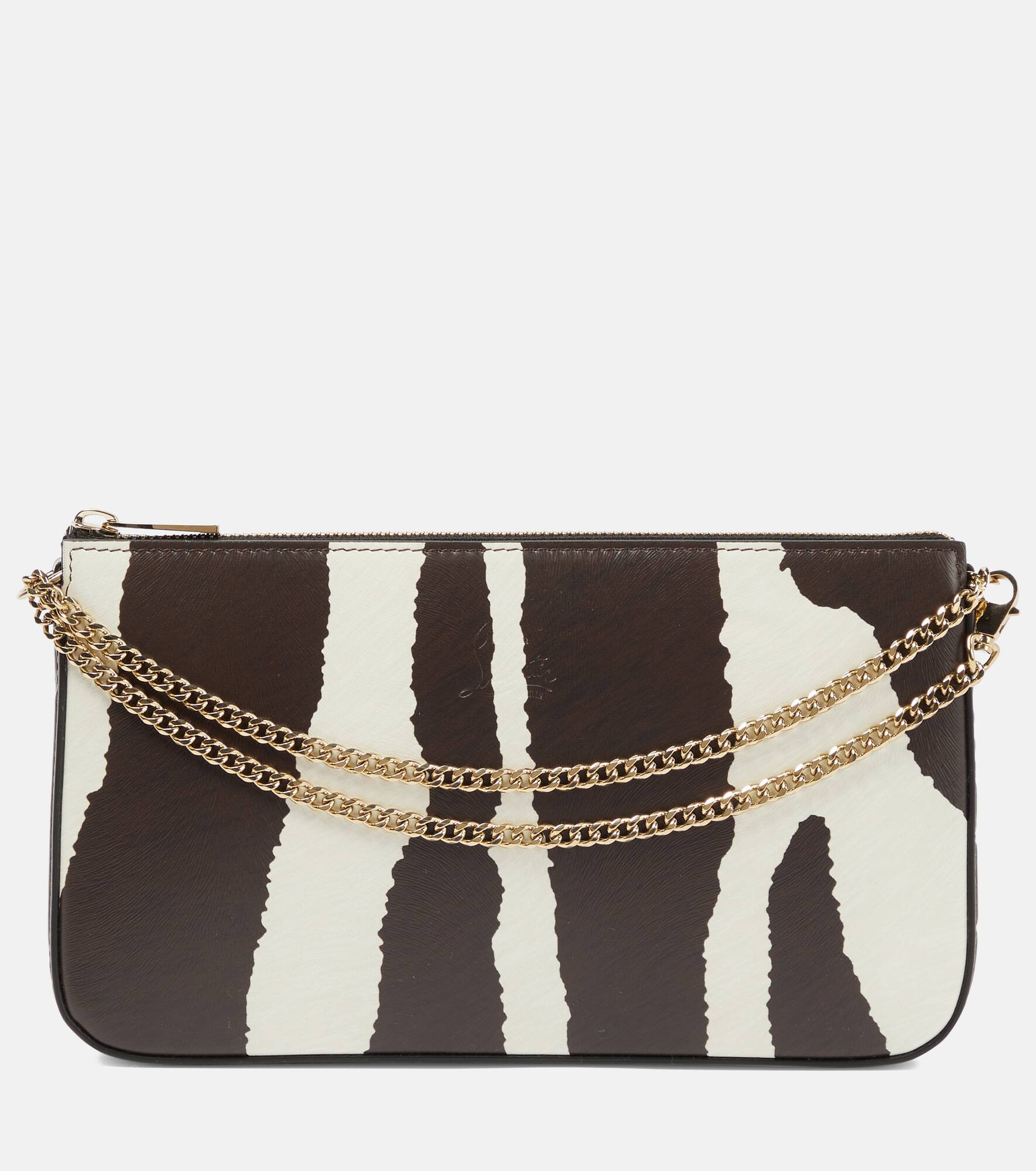 The Loubila from Christian Louboutin is a playful clutch made from butter-smooth leather in a zebra-print. With its subtle elegance and red interior, this piece perfectly embodies the brand's aesthetic. - material: cow leather - internal details: fabric lining - colour of chain strap: gold - detachable chain shoulder strap - zipped top - Made in Italy - comes with dust bag - Designer colour name: Dark Brown/Dark Brown size & fit - Height 13,5cm-5.5" - Width 24cm-9.5" - Max. depth 4cm-1.5" - Chain length 60cm-23.5"