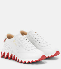 It's easy to see where Christian Louboutin's Loubishark sneakers get their names – the red ridged soles make for a striking look. Made in Italy from white calf leather, this design is all about sharp lines: note the lattice inserts at the heel, tonal spikes at the backstay and serrated trim around the laces. Product Details - Lining: leather - Sole: leather insole, rubber sole - Toe shape: round toe - Upper: calf leather - Comes with a box - Designer color name: Bianco - Closure: lace-up - Made in Italy - Trim: fabric - Item number: P00529748 Size & Fit - True to size - European sizes - 2,5cm-1" platform (size EU 38) - 6cm-2.5" wedge heel (size EU 38)