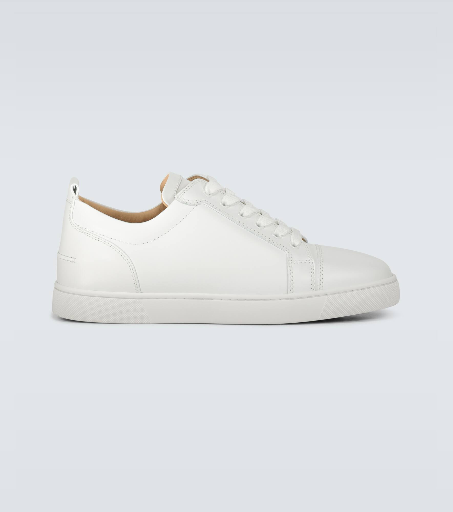 In a sleek white silhouette, these minimal sneakers from Christian Louboutin are Italian-made from smooth leather. Product Details - Lining: leather - Sole: leather insole, rubber sole - Toe shape: round toe - Upper: leather - Closure: lace-up - Designer color name: White - Made in Italy - Item number: P00483696 Size & Fit - True to size - European sizes