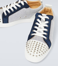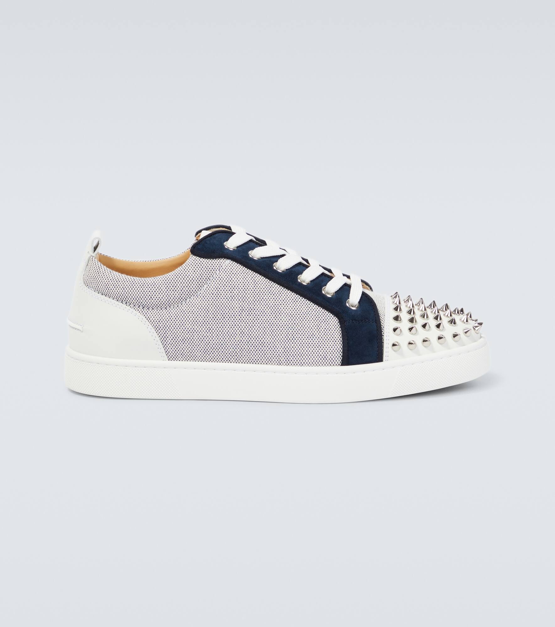 The Louis Junior Spikes sneakers from Christian Louboutin are crafted from leather and canvas and trimmed with suede. Set atop rubber soles; the lace-up style features eye-catching spike embellishments on the front. Product Details - Lining: leather - Upper: fabric - Sole: leather insole, rubber sole - Toe shape: round toe - Trim: leather - Comes with extra laces - Designer color name: Version Navy - Comes with a box - Closure: lace-up - Made in Italy - Comes with dust bags - Item number: P00752567 Size & Fit - True to size - Half sizes please take the next size up - European sizes