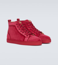 These sneakers from Christian Louboutin are made in Italy from lustrous suede, have a high-top silhouette and come in red. Product Details - Lining: leather - Sole: leather insole, rubber sole - Toe shape: round toe - Upper: calf leather - Closure: lace-up - Made in Italy - Item number: P00545912 Size & Fit - True to size - Half sizes please take the next size up - European sizes