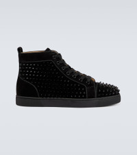 Christian Louboutin's high-top Louis Orlato sneakers are made from velvet suede. Punctuated with spike studs, they have tonal laces and rubber soles. Product Details - Closure: lace-up - Lining: leather - Sole: leather insole, rubber sole - Toe shape: round toe - Upper: calf leather - Comes with extra laces - Comes with dust bags - Comes with a box - Made in Italy - Item number: P00679561 Size & Fit - True to size - Half sizes please take the next size up - European sizes