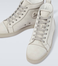 These high-top sneakers from Christian Louboutin are made from smooth goose-hued suede. The design is inspired by '80s styles and has punchy logo patches at the sides. Product Details - Lining: leather - Sole: leather insole, rubber sole - Toe shape: round toe - Comes with extra laces, Comes with dust bag, Comes with a box - Closure: lace-up - Designer color name: Goose - Made in Italy - Upper: leather - Item number: P00752580 Size & Fit - True to size - Half sizes please take the next size up - European sizes