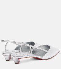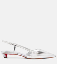 The Miss Z Slingina slingback pumps from Christian Louboutin are made from glossy laminated leather with sharp pointed toes. They rest atop modest 25mm heels and feature the house's Everlasting Red soles. Product Details - Upper: calf leather - Lining: leather - Sole: leather insole, signature red leather sole - Toe shape: pointed toe - Made in Italy - Includes: shoe box - Designer color name: Silver/Lin Silver - Item color: silver - Item number: P01045514 Size & Fit - True to size - European sizes - 2,5cm-1" heel (size EU 38)