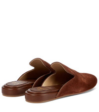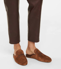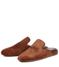 From Christian Louboutin's exclusive Nudes range, the Navy Coolito Donna slippers come in a spectrum of shades. Designed for Mytheresa, this pair in rich brown – the seventh hue of the collection – is made from soft suede with lambskin leather linings and logo-embroidered vamps. Product Details - Lining: leather - exclusive to mytheresa.com - Toe shape: round toe - Upper: calf leather, lamb leather - Sole: leather insole, signature red leather sole - Made in Italy - Item number: P00606990 Size & Fit - Fits slightly large to size - we recommend trying a half size smaller - European sizes - 3cm-1" wedge heel (size EU 38)