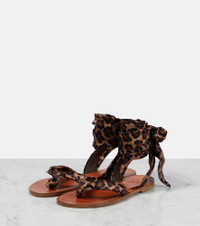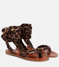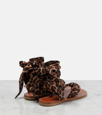 Embrace your fierce side with styles from Christian Louboutin’s Exclusive FW23 Capsule Collection for Mytheresa. Set on leather soles, the Niloo du Désert sandals feature knotted thong straps and wrap-around ankle ties in leopard-print satin. Product Details - Toe shape: round open toe - Upper: fabric - Sole: leather insole, signature red leather sole - Made in Spain - Comes with dust bags - Comes with a box - Item number: P00813265 Size & Fit - True to size - European sizes