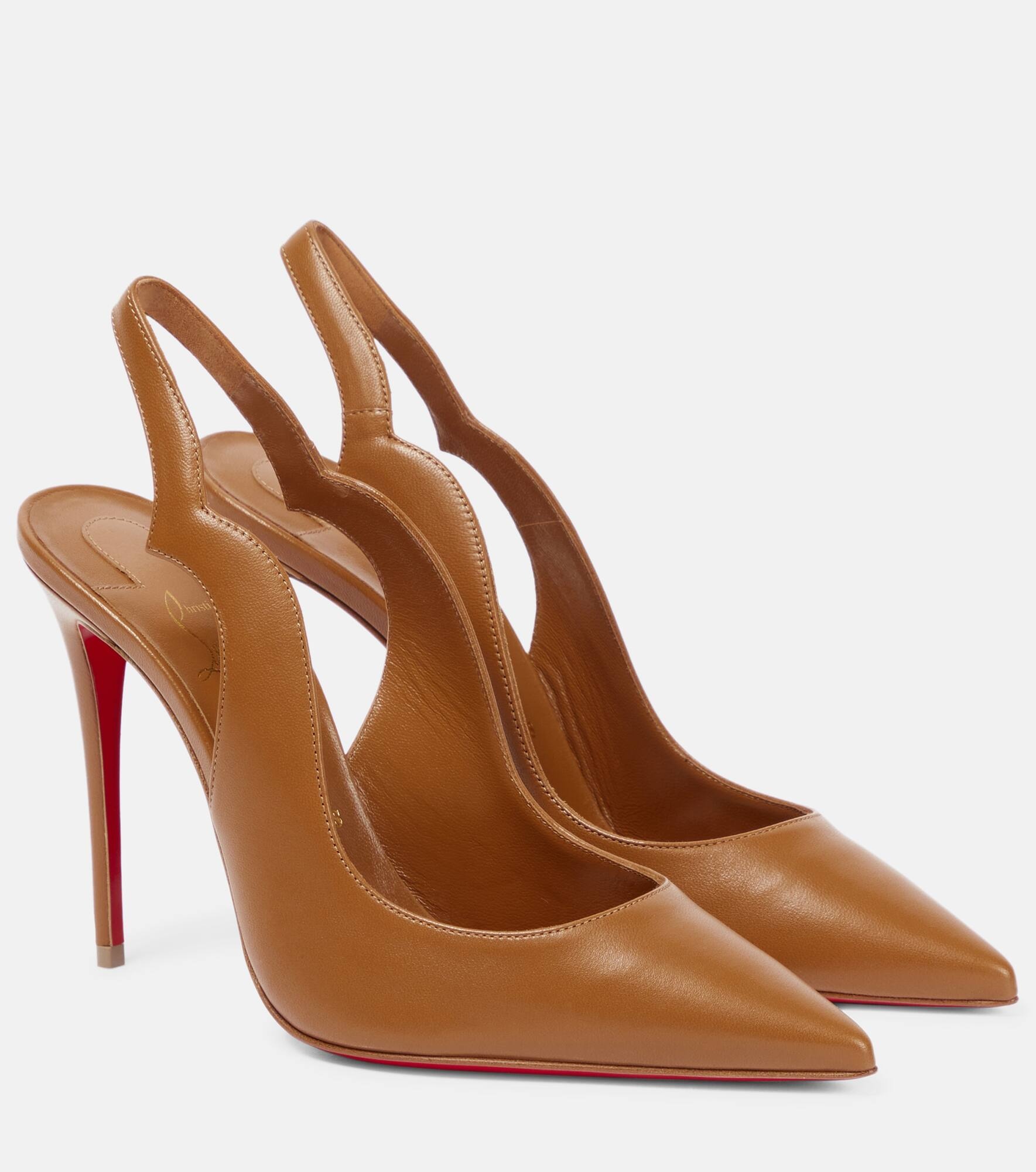 Christian Louboutin refreshes its Hot Chick pumps in the fourth-lightest of 8 nude shades for its eponymous collection. Notched ankle straps elegantly frame this leather pair, while iconic lacquered soles ensure unparalleled sophistication. Product Details - Upper: lamb leather - Sole: leather insole and sole - Comes with a box - Made in Italy - exclusive to mytheresa.com - Designer color name: Nude 4/Lin Nude 4 - Comes with extra heel tips - Comes with dust bag - Toe shape: pointed toe - Lining: lamb leather - Item number: P00695734 Size & Fit - True to size - Narrow at the toe - European sizes - 10cm-4" heel (size EU 38)