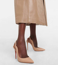 Christian Louboutin refreshes its Hot Chick pumps in the second-lightest of 8 nude shades for its eponymous collection. Notched ankle straps elegantly frame this leather pair, while iconic lacquered soles ensure unparalleled sophistication. Product Details - Sole: leather insole and sole - Upper: lamb leather - Comes with extra heel tips - Comes with a box - Made in Italy - Designer color name: Nude 2/Lin Nude 2 - Comes with dust bag - exclusive to mytheresa.com - Toe shape: pointed toe - Lining: lamb leather - Item number: P00695732 Size & Fit - True to size - Narrow at the toe - European sizes - 10cm-4" heel (size EU 38)