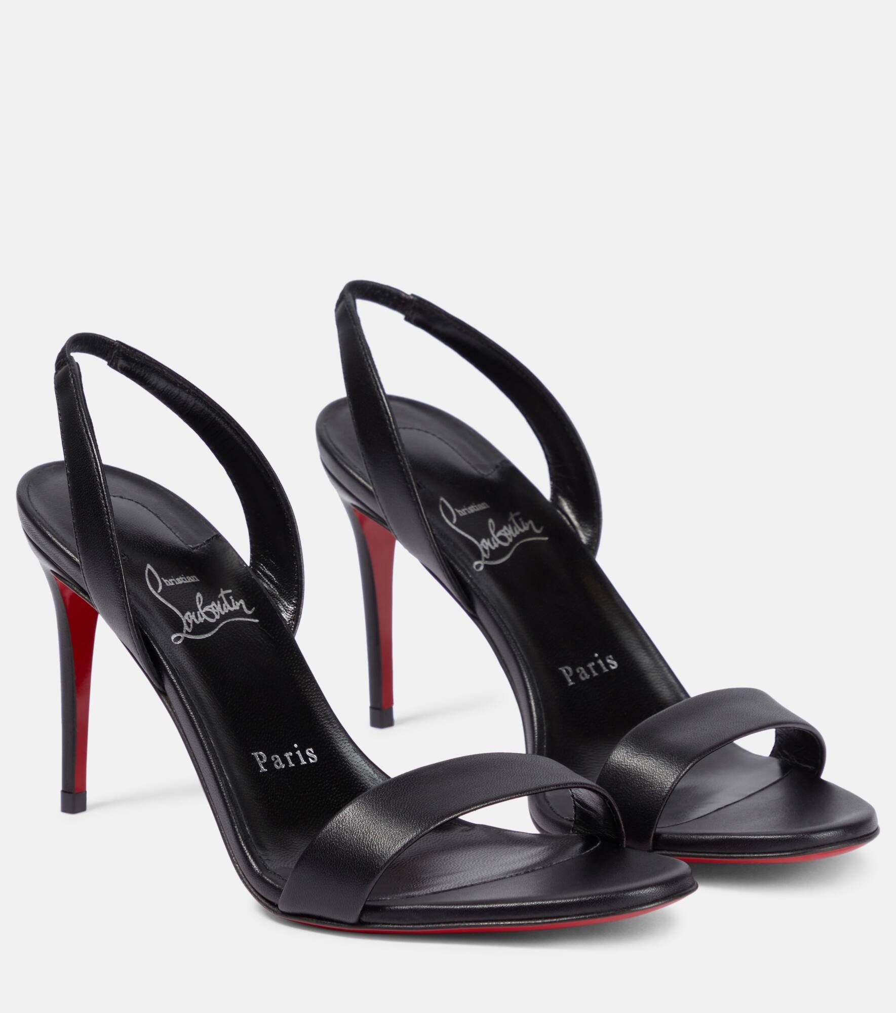 The O Marylin sandals from Christian Louboutin will be your go-to for evening looks. Made from smooth leather, this elegant pair sits atop 85mm stiletto heels and features elasticated slingback straps. Product Details - Toe shape: round open toe - Upper: lamb leather - Sole: leather insole and sole - Closure: elasticated strap - Designer color name: Black/Lin Black - Comes with extra heel tips - Comes with a box - Made in Italy - Comes with dust bags - Item number: P00813975 Size & Fit - True to size - European sizes - 8,5cm-3.5" heel (size EU 38)