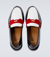 The Penny loafers, named for both their unique coin slot and their classic design, encapsulate Christian Louboutin's elegance. This pair is crafted from black and white patent leather and accented with the brand's signature Everlasting Red soles. Product Details - Upper: calf leather - Lining: leather - Sole: leather insole, signature red leather sole - Toe shape: round toe - Made in Italy - Includes: dust bag, shoe box - Designer color name: Mult - Item color: black, white, red - Item number: P01067685 Size & Fit - True to size - European sizes