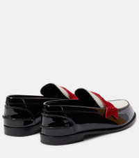 Penny suede-trimmed patent leather penny loafers