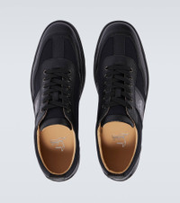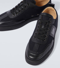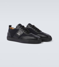 Crafted from leather, these Christian Louboutin sneakers blend casual ease with elevated style. Finished with Christian Louboutin's iconic red soles and the brand's logo, this pair makes every step you take a sophisticated one. Product Details - Upper: leather, fabric - Lining: leather - Sole: fabric insole, rubber sole - Toe shape: round toe - Made in Italy - Includes: dust bag, extra laces, shoe box - Designer color name: Black - Item color: black - Item number: P01050862 Size & Fit - Fits slightly small to size - we recommend trying a half size larger - European sizes