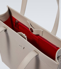 Christian Louboutin's elegant approach to leather craftmanship is spotlighted by the Ruistote bag. This grained calfskin style has a paneled border with scalloped trim, a tonal logo plaque, and twin top handles. Product Details - Material: polyurethane, leather - Closure: snap-buttoned fastening - Internal details: internal slot pocket, internal zipped pocket, fabric lining - Designer color name: Goose/Goose/Goose - Made in Italy - Protective feet - Comes with dust bag - Detachable, adjustable shoulder strap, Top handles - Item number: P00752582 Size & Fit - Height 35,5cm-14" - Width 31,5cm-12.5" - Depth 10cm-4" - Length of handles 51cm-20" - Min. length shoulder strap 75cm-29.5" - Max. length shoulder strap 114cm-45"