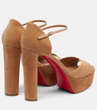 Crafted in Italy from suede, the Sandaloo platform sandals from Christian Louboutin feature slim ankle straps and 130mm block heels. Thanks to a signature coating technique, the Everlasting Red soles promise vibrancy that won't fade over time. Product Details - Upper: calf leather (suede) - Lining: calf leather - Sole: leather insole, signature red leather sole - Toe shape: almond open toe - Made in Italy - Includes: shoe box - Designer color name: Lionne/Lin Lionne - Item color: beige - Hardware color: silver - Closure: buckle-fastening ankle strap - Item number: P01045579 Size & Fit - True to size - European sizes - 13cm-5" heel (size EU 38) - 4cm-1.5" platform (size EU 38)