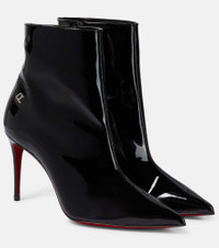 Slick and sophisticated, the Sporty Kate ankle boots from Christian Louboutin are a modern wardrobe staple. Made from glossy patent leather, the pointed-toe style has a slender silhouette and is set atop an 85mm stiletto heel. Product Details - Comes with extra heel tips - Closure: zipped side - Sole: leather insole and sole - Toe shape: pointed toe - Designer color name: Black/Lin Black - Comes with a box - Upper: leather - Made in Italy - Comes with dust bags - Item number: P00813969 Size & Fit - True to size - European sizes - 9cm-3.5" heel (size EU 38)
