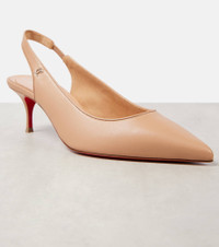 Product Details - Upper: leather - Lining: leather - Sole: leather insole, signature red leather sole - Toe shape: pointed toe - Made in Italy - Includes: extra heel tips, dust bags, shoe box - Designer color name: Blush - Closure: elasticated strap - Item number: P00924070 Size & Fit - True to size - European sizes - 5,5cm-2" heel (size EU 38)
