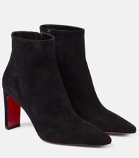 Exuding retro flair, Christian Louboutin's Suprabooty 85 suede ankle boots boast a sleek silhouette, a square heel, and the brand's signature red sole. Suitable for both the office and out in town, they are versatile and easy to style. Product Details - Upper: calf leather - Lining: leather - Sole: leather insole, signature red leather sole - Toe shape: pointed toe - Made in Italy - Designer color name: Black - Closure: zipped side - Comes with a box - Comes with dust bags - Item number: P00827868 Size & Fit - True to size - Best fit for narrow feet - European sizes - 8,5cm-3.5" heel (size EU 38)