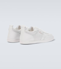 Crafted entirely from leather, the Tutti Rui low-top sneakers from Christian Louboutin showcases the brand's logo on their iconic red soles. This pair makes every step you take a sophisticated one. Product Details - Upper: leather - Lining: fabric - Sole: leather insole, signature red rubber sole - Toe shape: almond toe - Made in Italy - Includes: shoe box, extra laces - Designer color name: White - Hardware color: silver - Closure: lace-up - Item number: P01008396 Size & Fit - True to size - European sizes