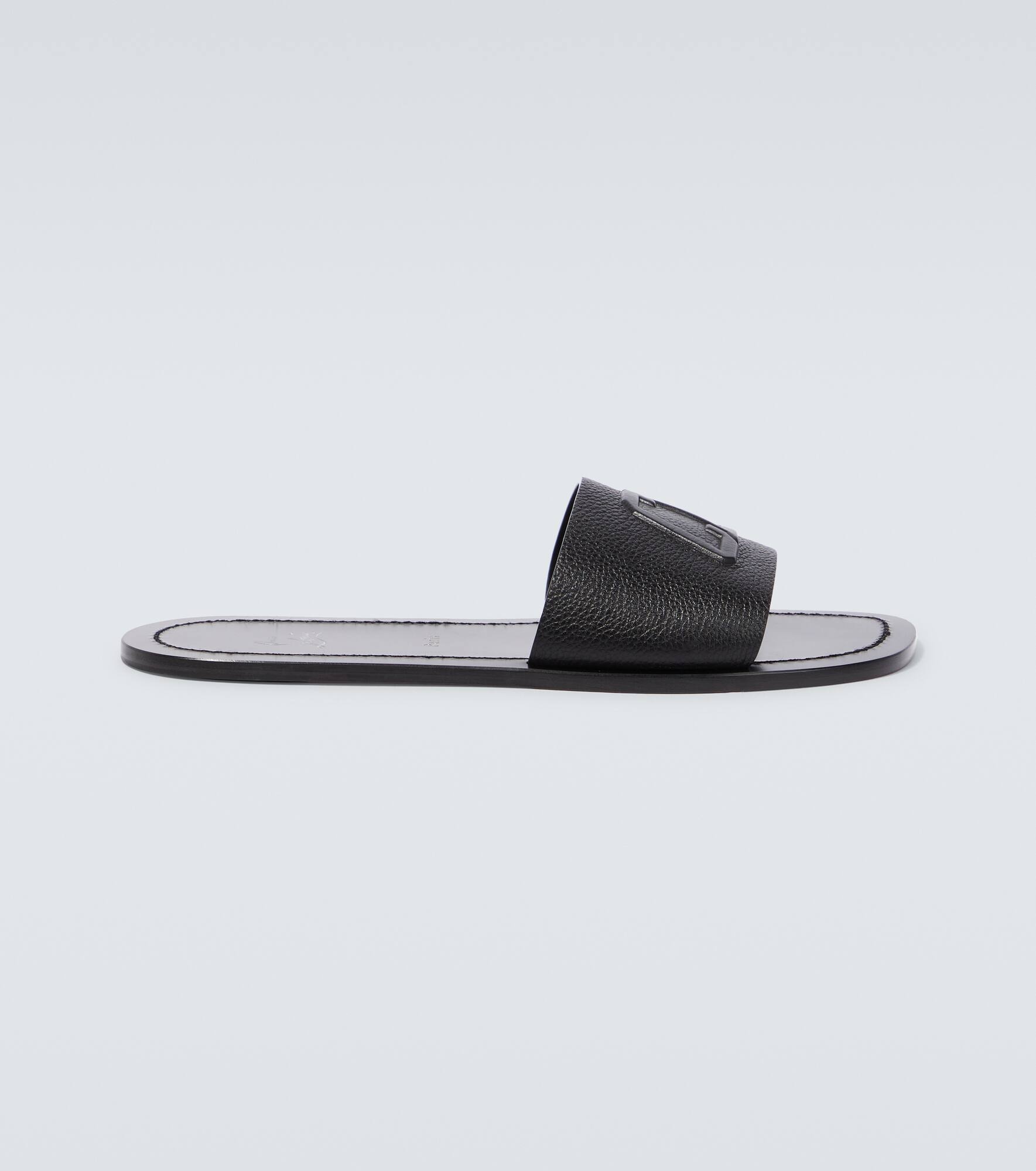 Embrace effortlessly cool styles like the Varsicool slides from Christian Louboutin. Made from grained leather, this slip-on pair has the brand's CL logo debossed on the uppers. Product Details - Toe shape: round open toe - Lining: leather - Upper: cow leather - Sole: leather insole and sole - Comes with dust bags - Designer color name: Black - Comes with a box - Made in Italy - Item number: P00752562 Size & Fit - True to size - Half sizes please take the next size up - European sizes