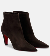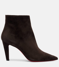 Crafted from soft suede, the Vibella ankle boots are set on 85mm heels and feature sleek pointed toes. Finished with Christian Louboutin's iconic red soles, this pair makes every step you take a sophisticated one. Product Details - Upper: leather (suede) - Lining: leather - Sole: leather insole, signature red leather sole - Toe shape: pointed toe - Made in Italy - Includes: shoe box - Designer color name: Cafe - Item color: brown - Closure: zipped side - Item number: P01082521 Size & Fit - True to size - European sizes - 8,5cm-3.5" heel (size EU 38)
