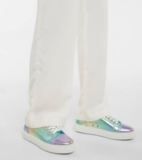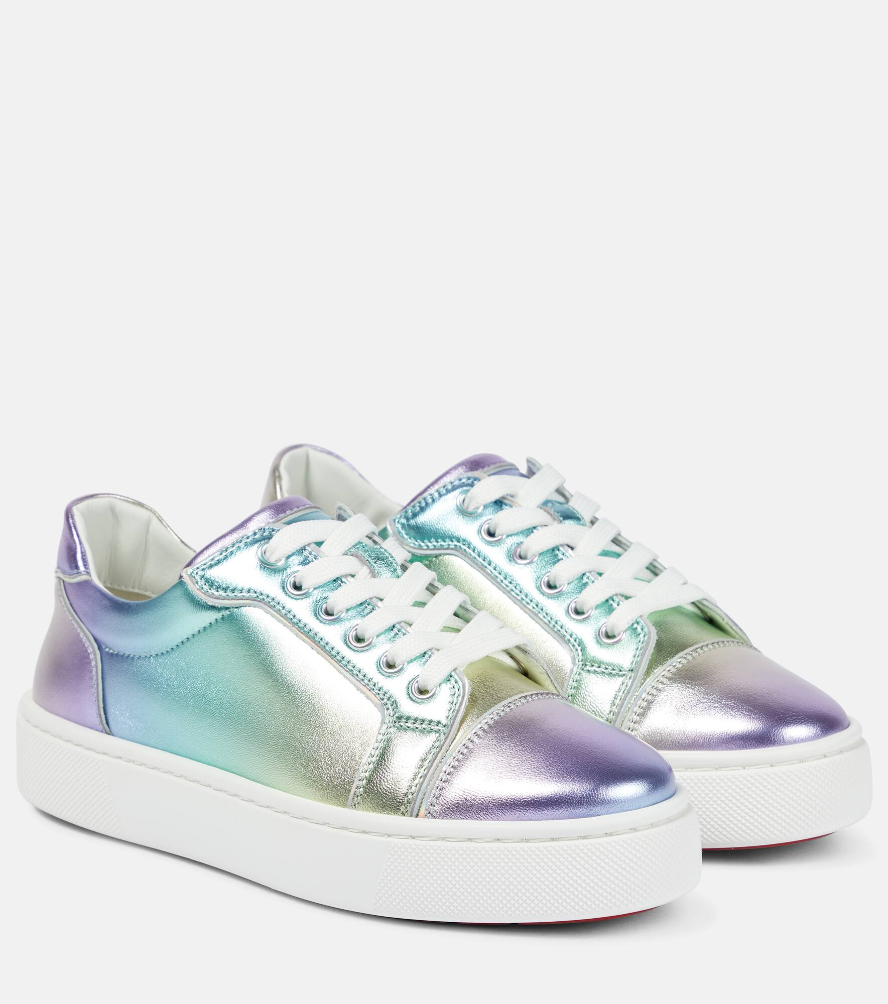 Christian Louboutin's Vieirissima sneakers receive a bold update with metallic leather uppers. The multicolored pair is complemented by a minimalist silhouette and iconic red soles. Product Details - Lining: leather - Sole: leather insole, rubber sole - Toe shape: round toe - Upper: lamb leather - Closure: lace-up - Designer color name: Multi/Bianco - Made in Italy - Item number: P00618412 Size & Fit - Fits slightly large to size - we recommend trying a half size smaller - Slightly wide - European sizes - 2,5cm-1" platform (size EU 38)
