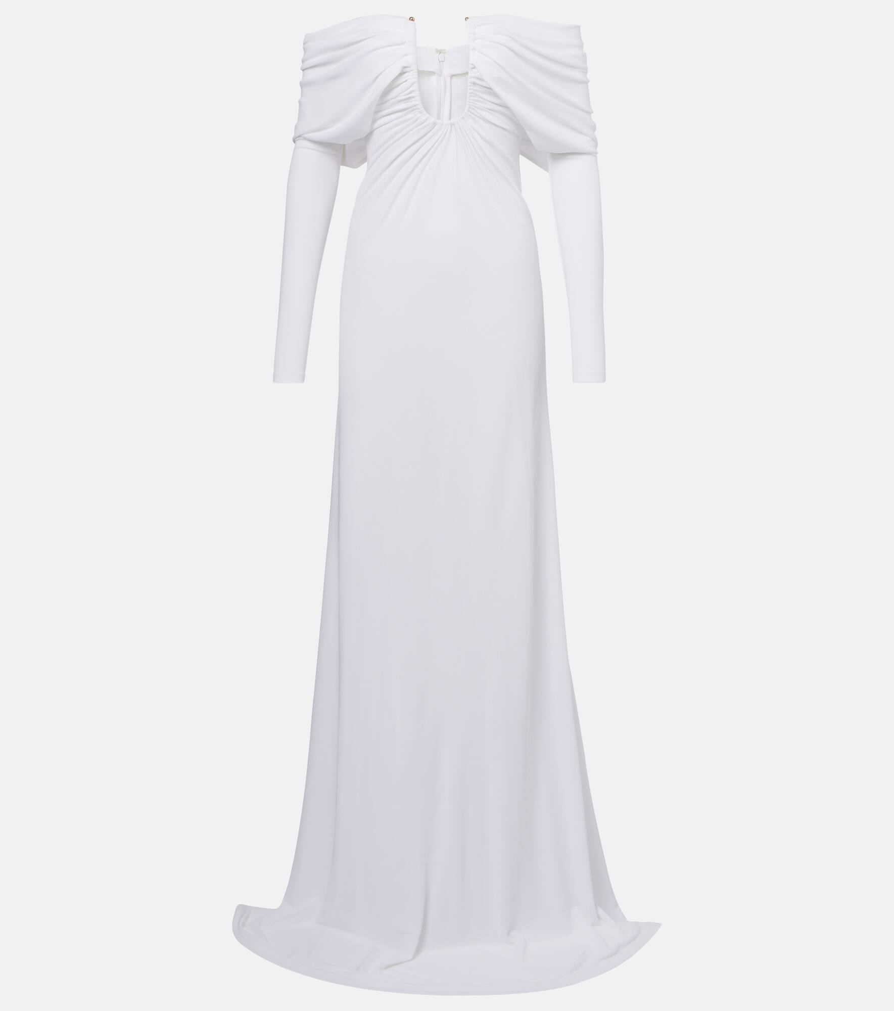 Product Details - Material: 100% viscose - Care instructions: dry clean - Made in India - Designer color name: White - Item color: white - Material II: 100% copper - Closure: invisible zipper - Item number: P01034047 Size & Fit - True to size - Semi-sheer - Cinched waist - Stretchy fabric - The model seen in the picture is 178cm-5'10" and wearing a size UK 6