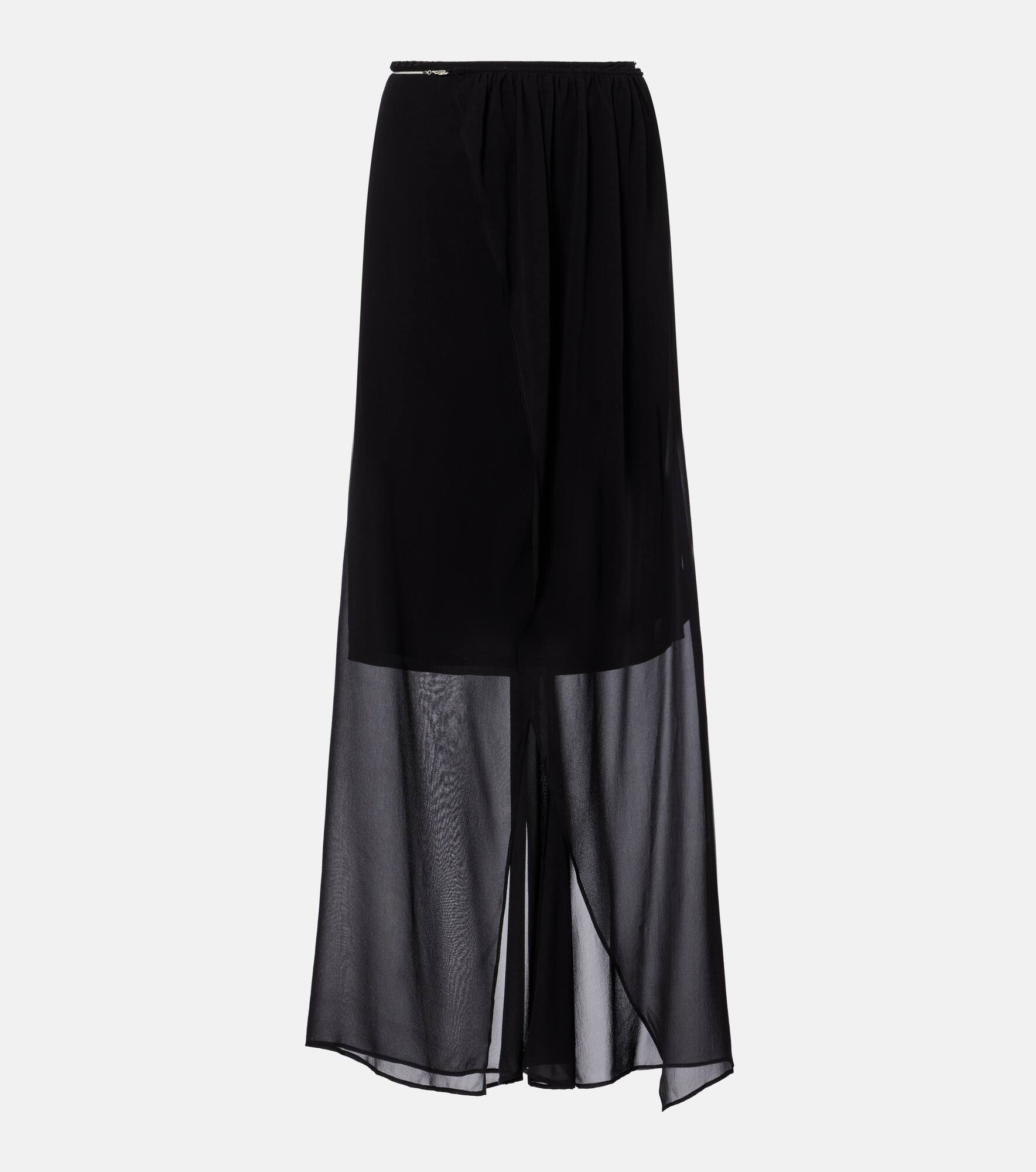 This Christopher Esber wrap skirt is designed with a sheer layer and a fitted skirt underneath for added coverage. Crafted from pure silk georgette, the design boasts an elasticated waistband finished with a fine metal chain Product Details - Material: 100% silk - Care instructions: dry clean - Made in Vietnam - Designer color name: Black - Item color: black - Two-piece set - Item number: P01048206 Size & Fit - True to size - Elasticated waist - Non-stretchy fabric - The model seen in the picture is 178cm-5'10" and wearing a size UK 6