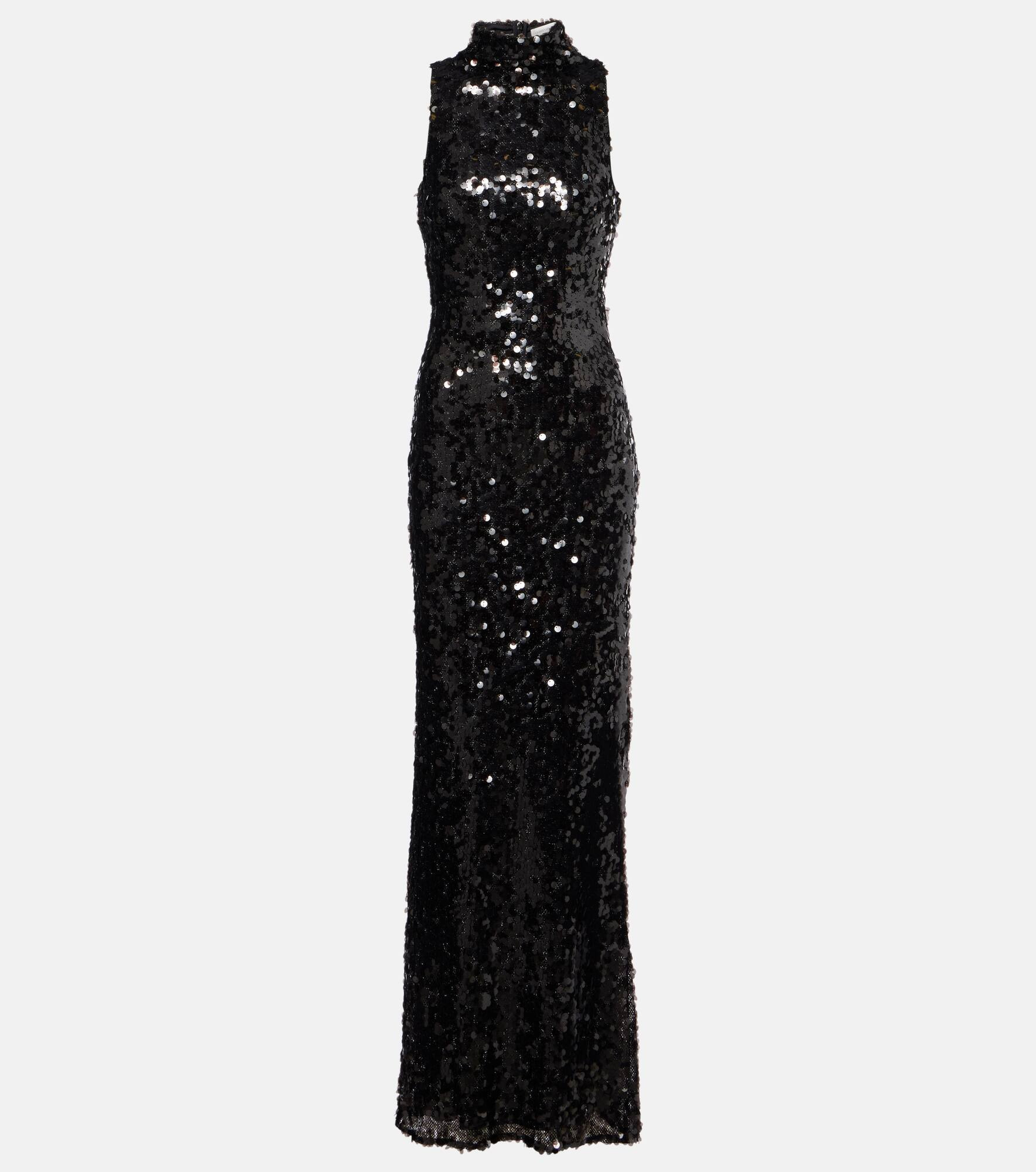 Christopher Esber's sensual cuts make for a contemporary twist on minimalism. The Cristalla gown is made to a full-length halterneck silhouette and featured sequin embellishments. Product Details - Material: 100% polyester - Care instructions: dry clean - Made in Vietnam - Designer color name: Black - Item color: black - Lining: 64% nylon, 36% elastane - Collar: mockneck - Closure: concealed zipped back - Hem: straight - Item number: P01090525 Size & Fit - True to size - Fitted - Slightly stretchy fabric - The model seen in the picture is 178cm-5'10" and wearing a size UK 6