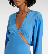Product Details - Material: 100% silk - Care instructions: dry clean - Made in China - Designer color name: Boston Blue - Buttoned cuffs - Drawstring waist - Item number: P01000783