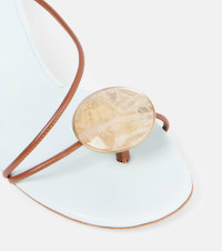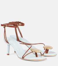Refine your summer shoe edit with the Doma sandals from Christopher Esber. Crafted from blue and brown supple leather, this pair is set atop 70mm heels and features intricate straps anchored by tiger's eye-embellished hardware. Product Details - Upper: leather - Lining: leather - Sole: leather insole and sole - Toe shape: round open toe - Made in Italy - Includes: shoe box, dust bags - Designer color name: Chalky Blue - Item color: blue - Closure: buckle-fastening ankle strap - Hardware color: cream - Item number: P01044120 Size & Fit - True to size - Half sizes please take the next size down - European sizes - 7cm-3" heel (size EU 38)