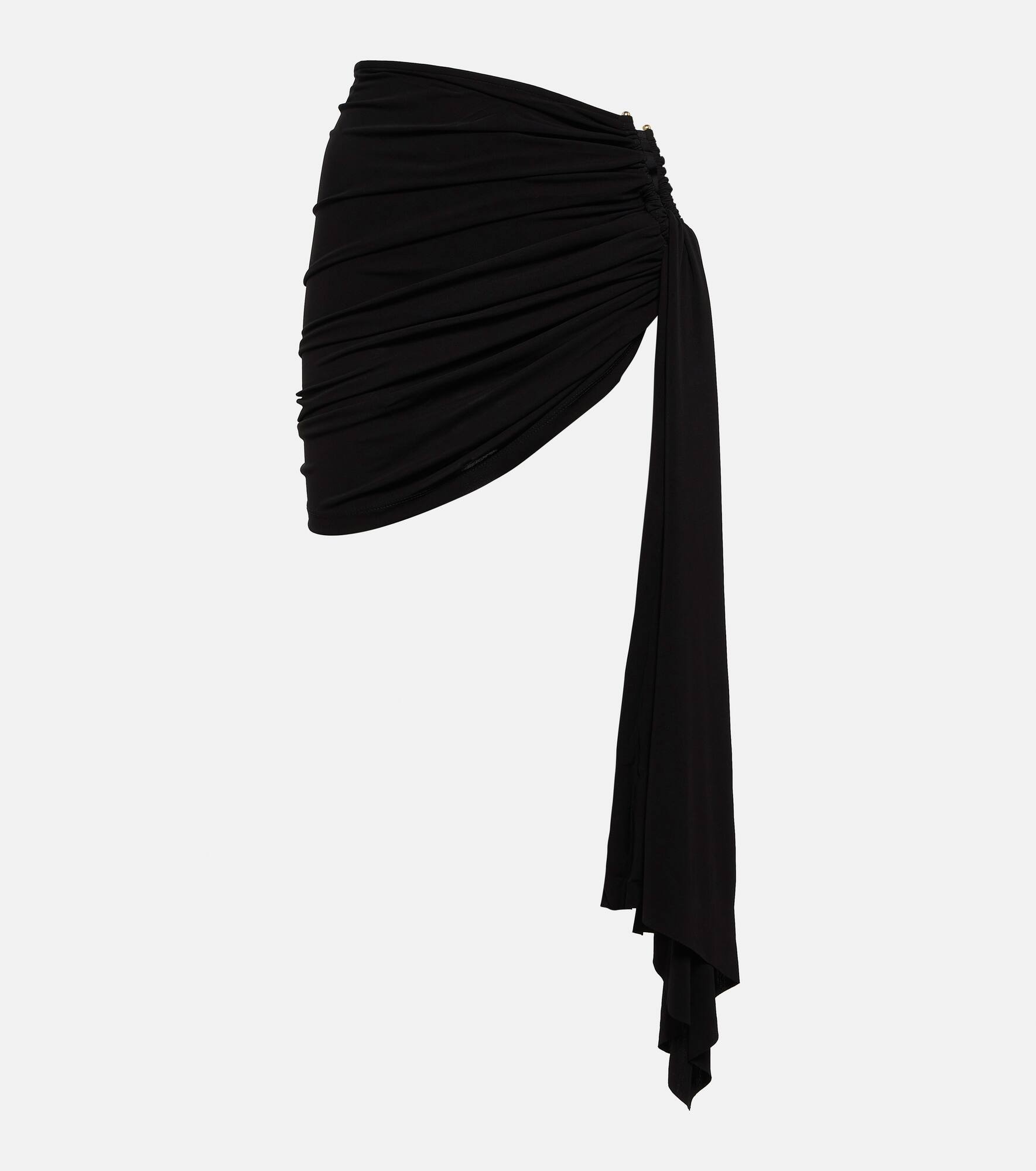 Christopher Esber's sensual cuts and sculptural hardware makes for a contemporary twist on minimalism. This miniskirt is features gathered and draped detailing on an asymetric hem as well as a deep U cutout framed by a hardware prong. Product Details - Care instructions: hand wash - Made in India - Closure: zipped side - Designer color name: Black - Material: 100% viscose - Item number: P00840710 Size & Fit - True to size - Fitted - Mid-weight material - Stretchy fabric - The model seen in the picture is 178cm-5'10" and wearing a size UK 8