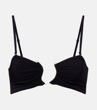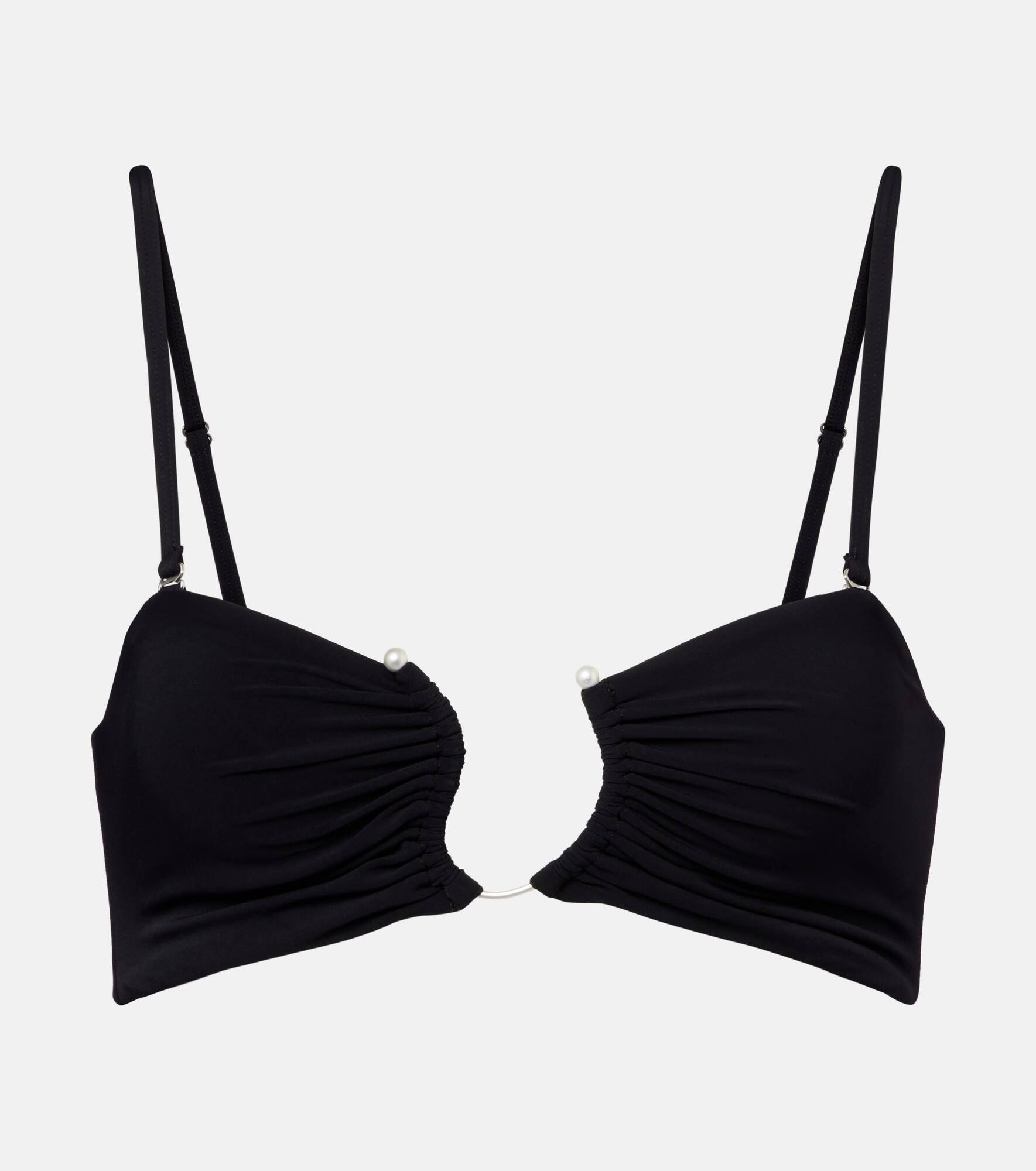 Christopher Esber's sensual cuts and sculptural hardware make for a contemporary twist on minimalism. This bikini top features ruching at the bust, complemented by a statement-making open curved neckline held together by a pearl-embellished hardware anchor. Product Details - Material: 72% polyamide, 28% elastane - Care instructions: hand wash - Made in China - Designer color name: Black - Item color: black - Item number: P01034644 Size & Fit - Fits small to size - we recommend trying one size larger - Unpadded Top - The model seen in the picture is 178cm-5'10", cup size B, and wearing a size UK 8
