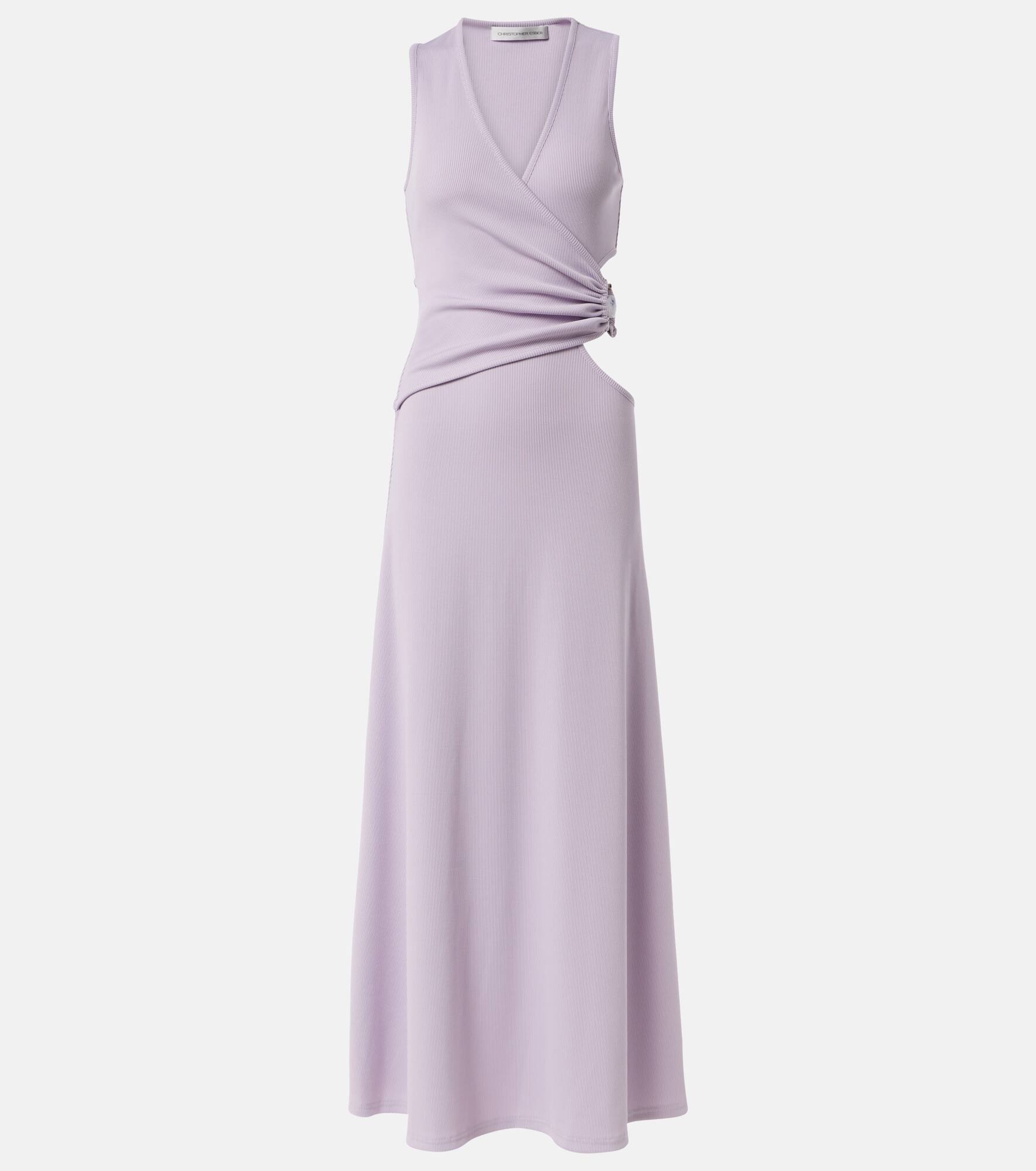 Christopher Esber's sensual cuts and sculptural hardware make for a contemporary twist on minimalism. This cutout maxi dress features a V-neckline with a wrapped detailing that connects to the brand's signature natural stone embellishment. Product Details - Material: 96% polyester, 4% elastane - Care instructions: dry clean - Made in Vietnam - Designer color name: Dusty Lilac - Item color: purple - Item number: P01033978 Size & Fit - True to size - Cinched waist - Stretchy fabric - The model seen in the picture is 178cm-5'10" and wearing a size UK 6