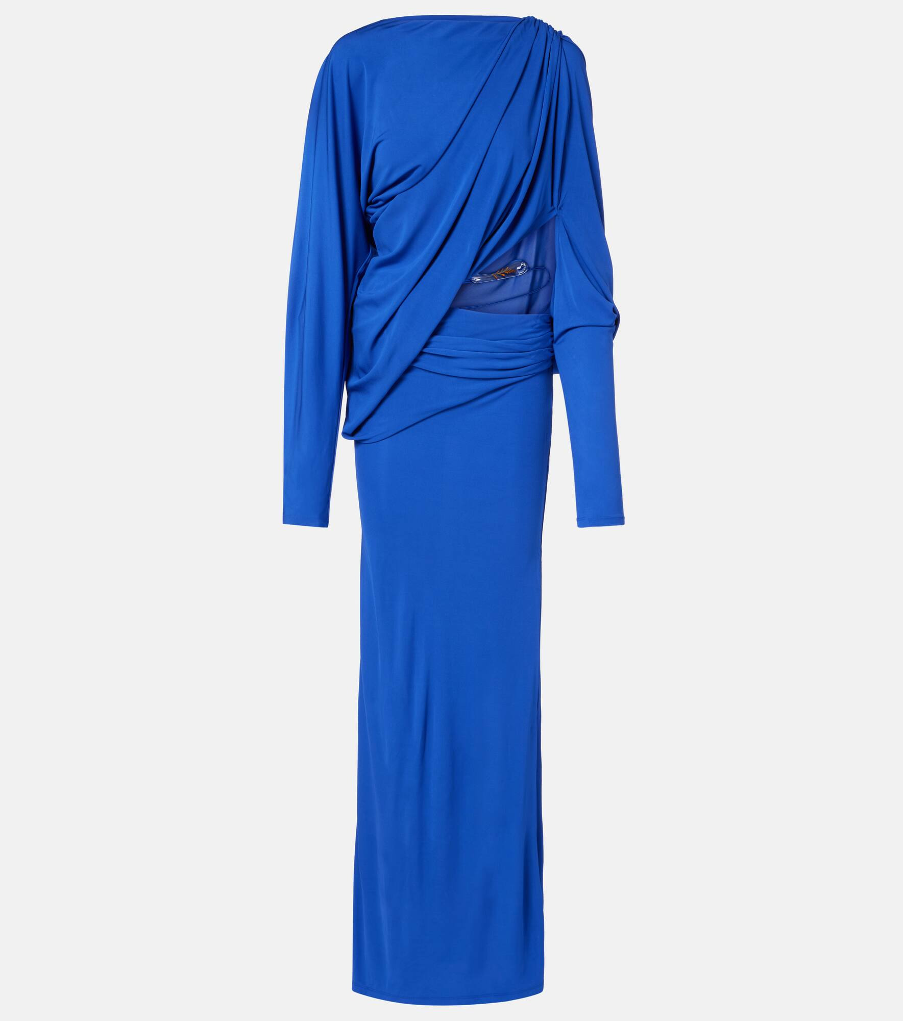 Made from slinky jersey, the Encased Nature gown from Christopher Esber showcases sculptural draping and gathering at the hip. A waist cutout framed by clear resin adds a striking detail to this floor-length piece. Product Details - Material: 100% viscose - Care instructions: dry clean - Made in India - Designer color name: Yves Blue - Item color: blue - Item number: P01048193 Size & Fit - True to size - Cinched waist - Non-stretchy fabric - The model seen in the picture is 178cm-5'10" and wearing a size UK 6
