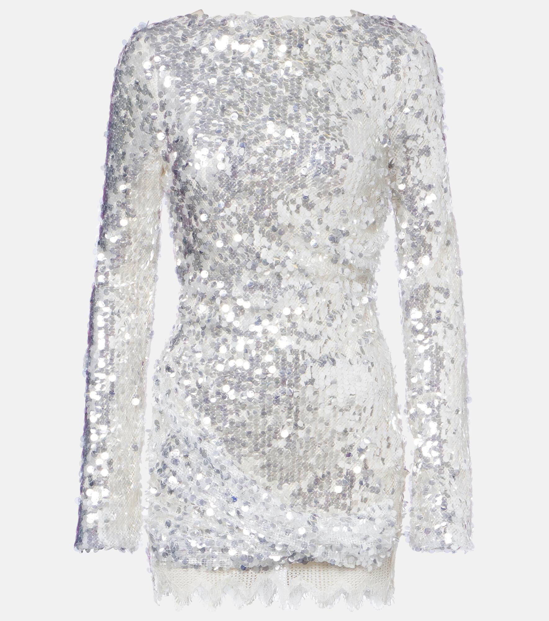 Christopher Esber's sensual cuts make for a contemporary twist on minimalism. The Opaline minidress is defined by shimmering sequined and accented by a lace-trim and an open-back design. Product Details - Material: 100% polyester - Care instructions: dry clean - Made in Vietnam - Designer color name: Silver - Item color: white, silver - Lining: 64% nylon, 36% elastane - Trim: 96.5% cotton (organic), 3.5% polyamide - Sleeves: long-sleeved - Item number: P01090526 Size & Fit - True to size - Low back - Fitted - Slightly stretchy fabric - The model seen in the picture is 178cm-5'10" and wearing a size UK 6