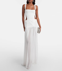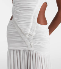 Christopher Esber's sensual cuts and sculptural hardware make for a contemporary twist on minimalism. The Orion maxi dress features a cinched waist, low-back silhouette with a semi-sheer construction, and the brand's signature hardware. Product Details - Material: 71% rayon, 29% polyester - Care instructions: dry clean - Made in China - Designer color name: White - Item color: white - Closure: invisible zipper - Item number: P01074746 Size & Fit - True to size - Low back - Cinched waist - Stretchy fabric - The model seen in the picture is 178cm-5'10" and wearing a size UK 6