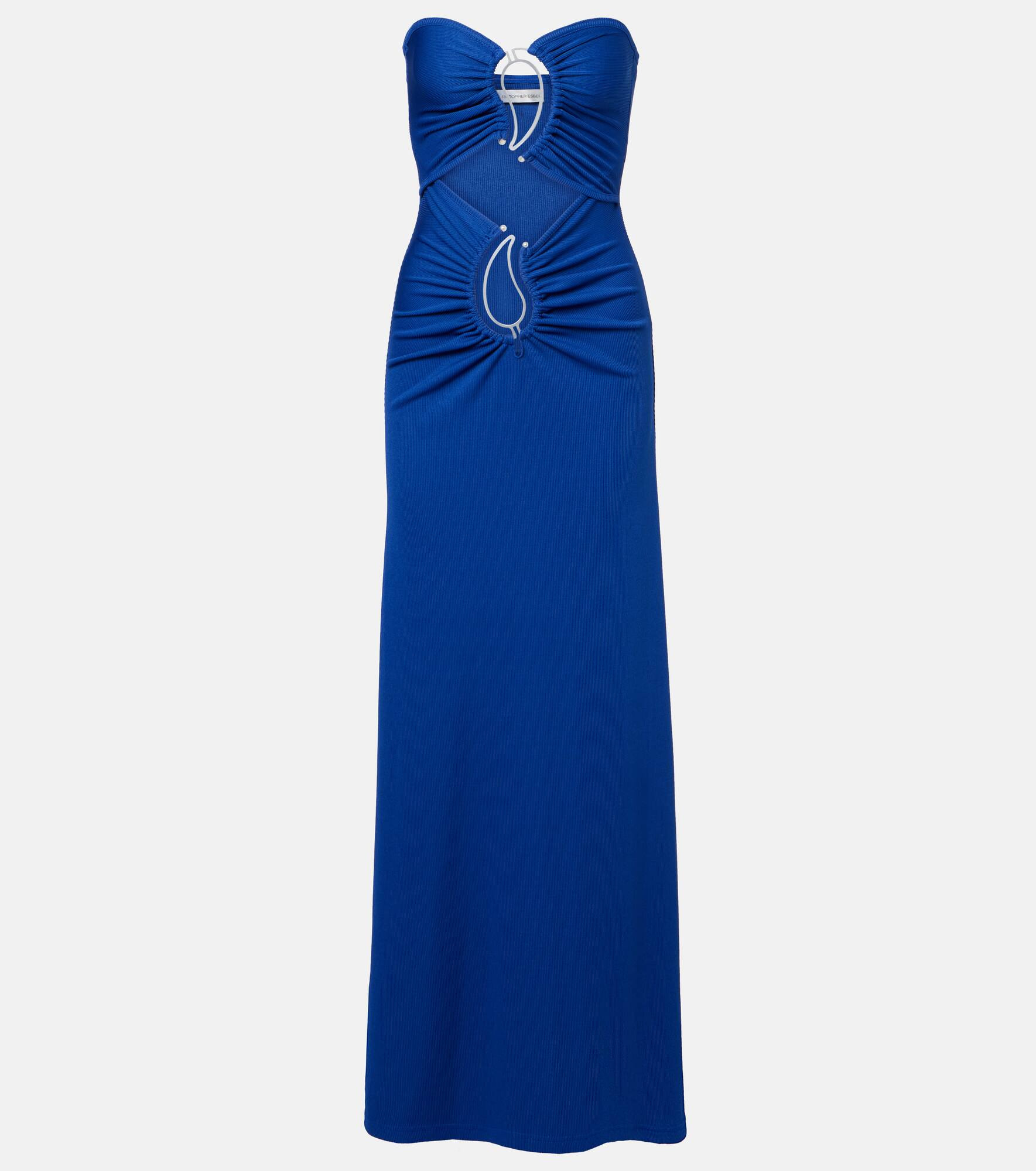 The Paisley Disconnect strapless maxi dress from Christopher Esber features a fluid column silhouette with alluring front cutouts. This design is softly gathered and framed by the signature metal paisley detail. Product Details - Material: 96% polyester, 4% elastane - Care instructions: dry clean - Made in Vietnam - Designer color name: Yves Blue - Item color: blue - Details: 100% copper - Item number: P01048166 Size & Fit - True to size - Strapless - Fitted - Stretchy fabric - The model seen in the picture is 178cm-5'10" and wearing a size UK 6