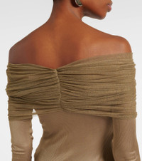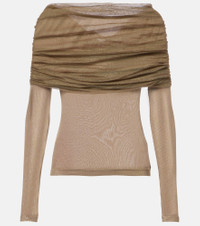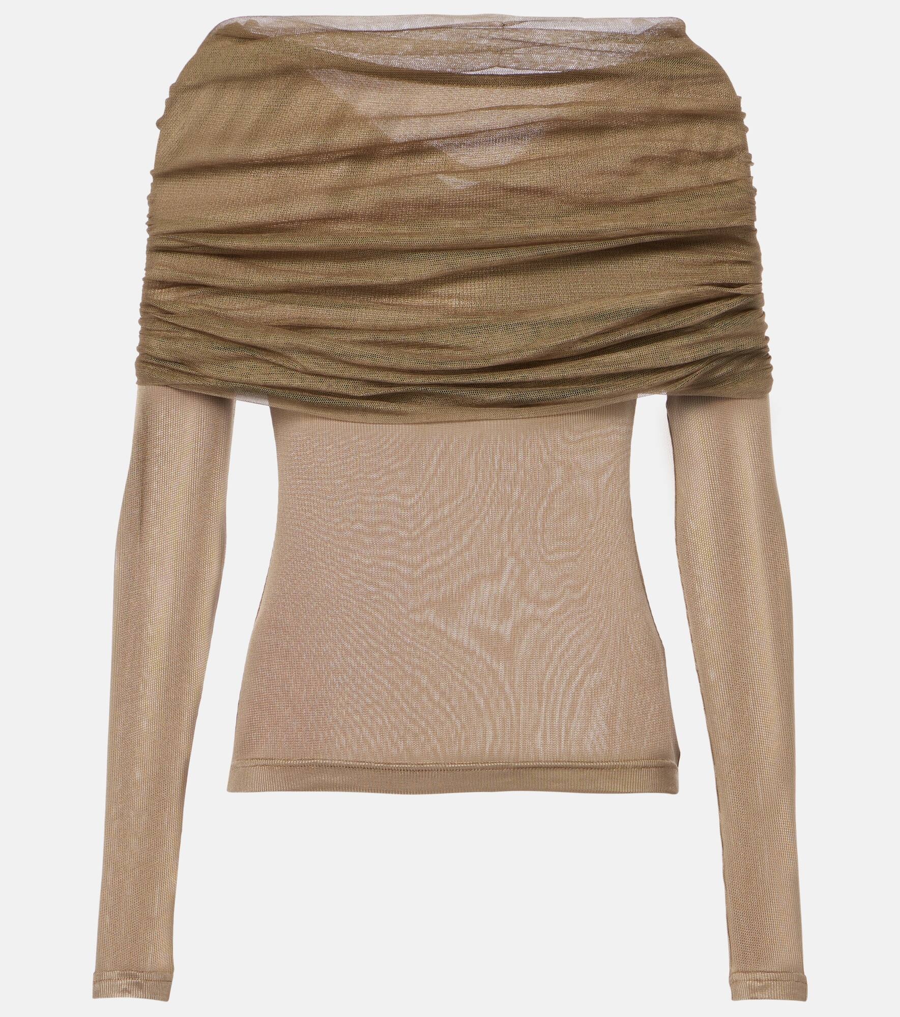 Veiled Draped Off-the-shoulder Ribbed Jersey And Silk-tulle Top