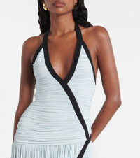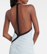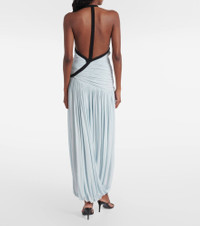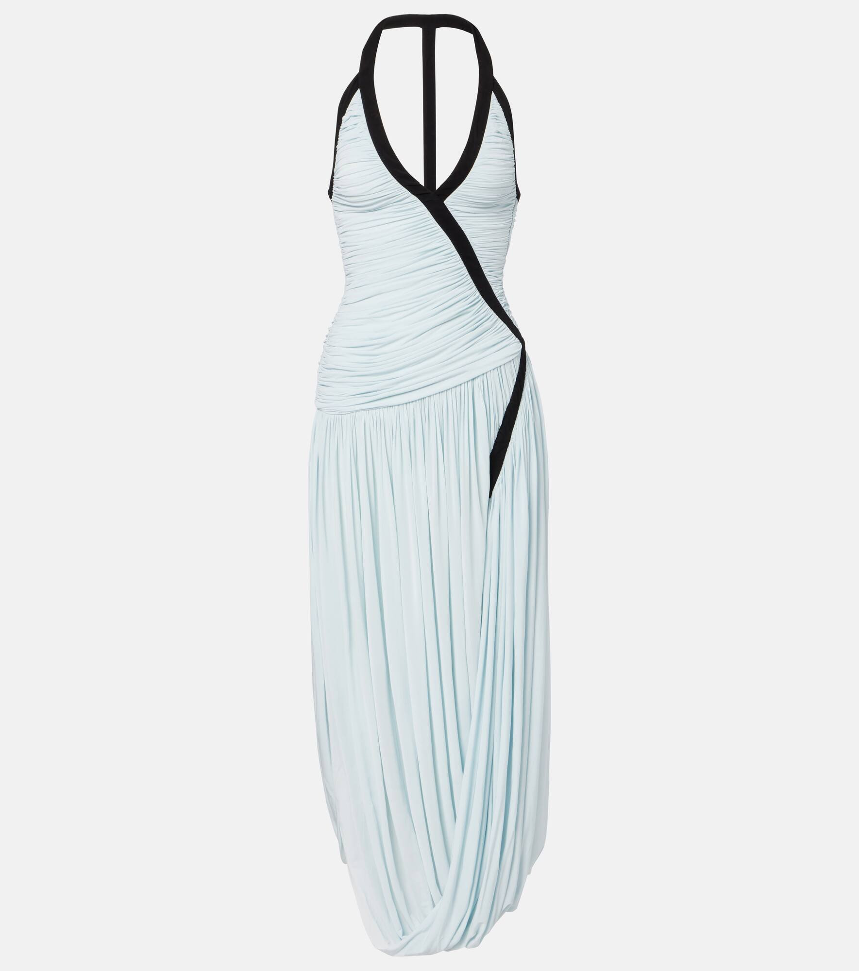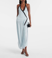 Christopher Esber’s designs radiate quiet confidence and strength. Crafted from fluid jersey, the Suspended maxi dress features a plunging halter neckline, a ruched bodice with contrast binding, and a gathered, draped skirt that moves with effortless elegance. Product Details - Material: 92% viscose, 8% elastane - Care instructions: dry clean - Made in China - Designer color name: Clear Blue/Black - Item color: blue, black - Collar: V-neck - Closure: zipped side - Hem: uneven - Item number: P01048149 Size & Fit - True to size - Low back - Cinched waist - Stretchy fabric - The model seen in the picture is 178cm-5'10" and wearing a size UK 6