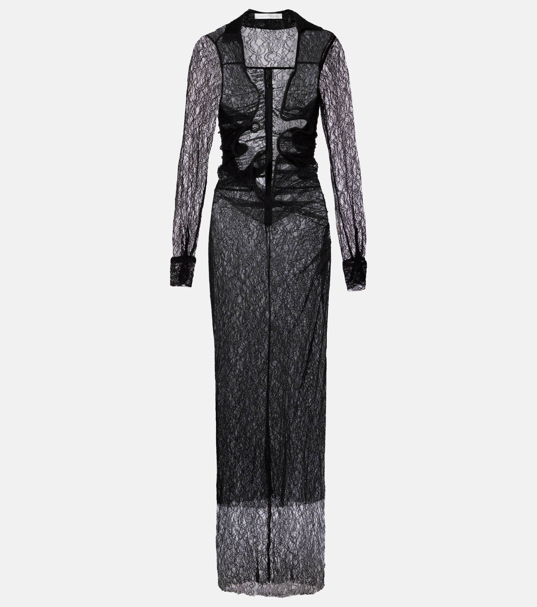 Christopher Esber's sensual cuts and sculptural hardware make for a contemporary twist on minimalism. The Venus lace gown features a sheer finish and a striking plunging bodice, complete with internal structuring and a wired frame for support. Product Details - Material: 40% polyamide, 37% viscose, 23% elastane - Care instructions: dry clean - Made in Vietnam - Designer color name: Black - Item color: black - Collar: spread - Lining: 100% silk - Closure: zipped back - Item number: P01048201 Size & Fit - True to size - Sheer - Fitted - Slightly stretchy fabric - The model seen in the picture is 178cm-5'10" and wearing a size UK 6