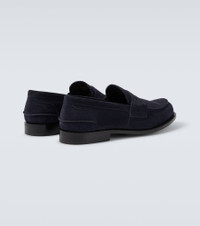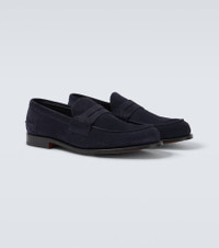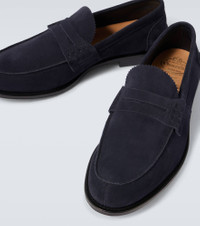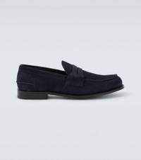 A classic slip-on shoe, the Pembrey suede loafers from Church's are crafted in England with hand-stitched details, an almond toe, and are unlined for premium softness. Product Details - Upper: leather (suede) - Lining: leather - Sole: leather insole, leather and rubber sole - Toe shape: almond toe - Made in the UK - Includes: dust bag, shoe box - Designer color name: Navy - Item color: blue - Item number: P01070172 Size & Fit - Fits slightly large to size - we recommend trying a half size smaller - UK sizes
