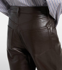 These Ayla pants from Citizens of Humanity are crafted from a soft, stretchy leather-blend in a high-rise fit. The design flows down to a relaxed wide-leg silhouette. Product Details - Material: 50% leather (recycled), 30% polyurethane, 10% viscose, 10% polyester - Care instructions: dry clean - Made in Turkey - Designer color name: Chocolate - Item color: brown - Closure: zipper fly, button fastening - Pockets: five pockets - Belt loops - Item number: P01111942 Size & Fit - True to size - Non-stretchy fabric - Wide-leg - High-waisted - The model seen in the picture is 178cm-5'10" and wearing a size 26