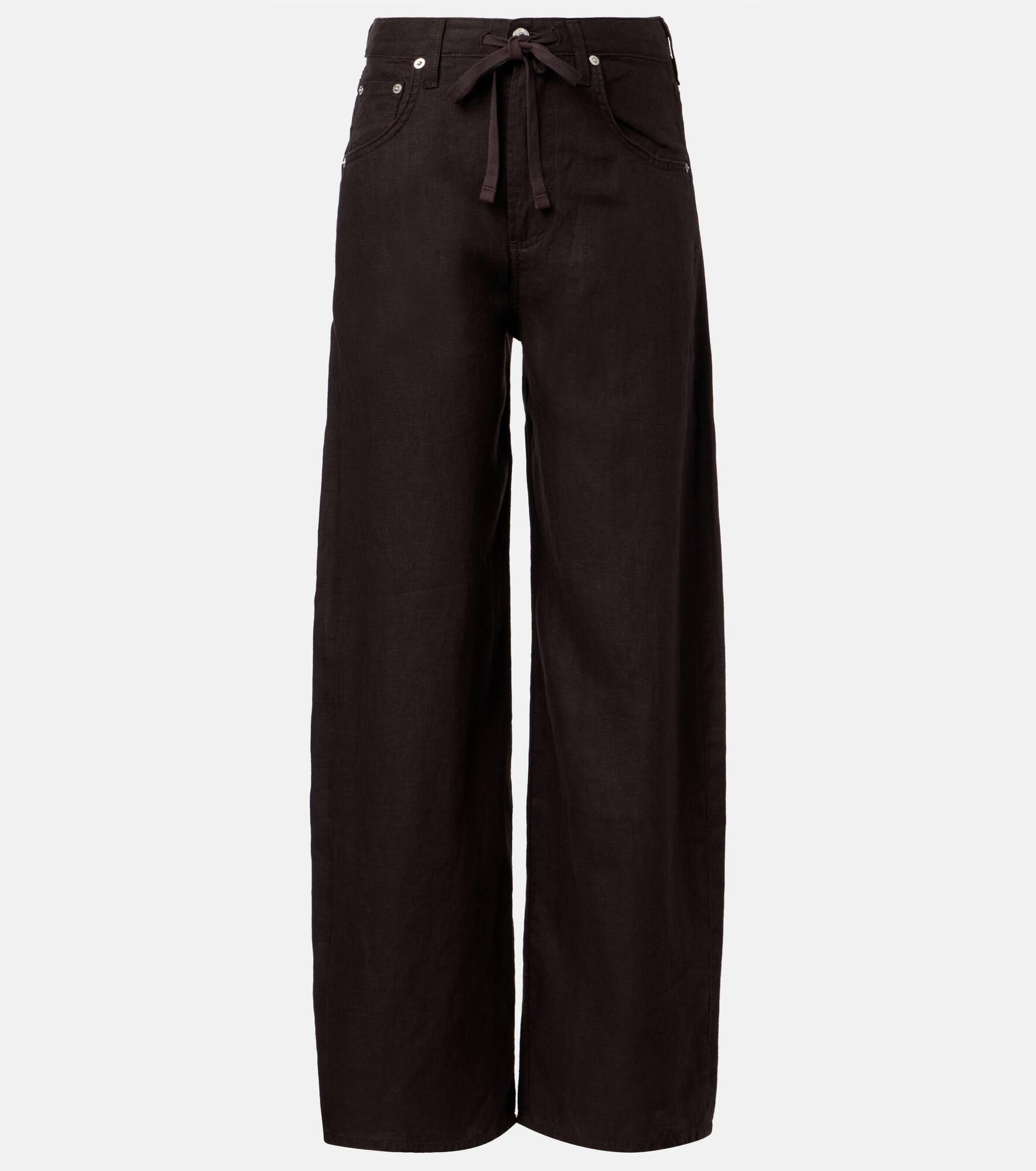 If you're looking for an effortlessly elegant yet comfortable style, the Brynn pants from Citizens of Humanity are for you. Crafted from lightweight linen, this wide-leg style can be paired with the coordinated top or worn solo. Product Details - Material: 100% linen - Care instructions: machine wash cold - Made in the USA - Designer color name: Chocolate - Item color: brown - Closure: drawstring, zip and button fastening - Pockets: five pockets - Belt loops - Item number: P01057541 Size & Fit - True to size - Adjustable at the waist - Non-stretchy fabric - Wide-leg - The model seen in the picture is 178cm-5'10" and wearing a size 26