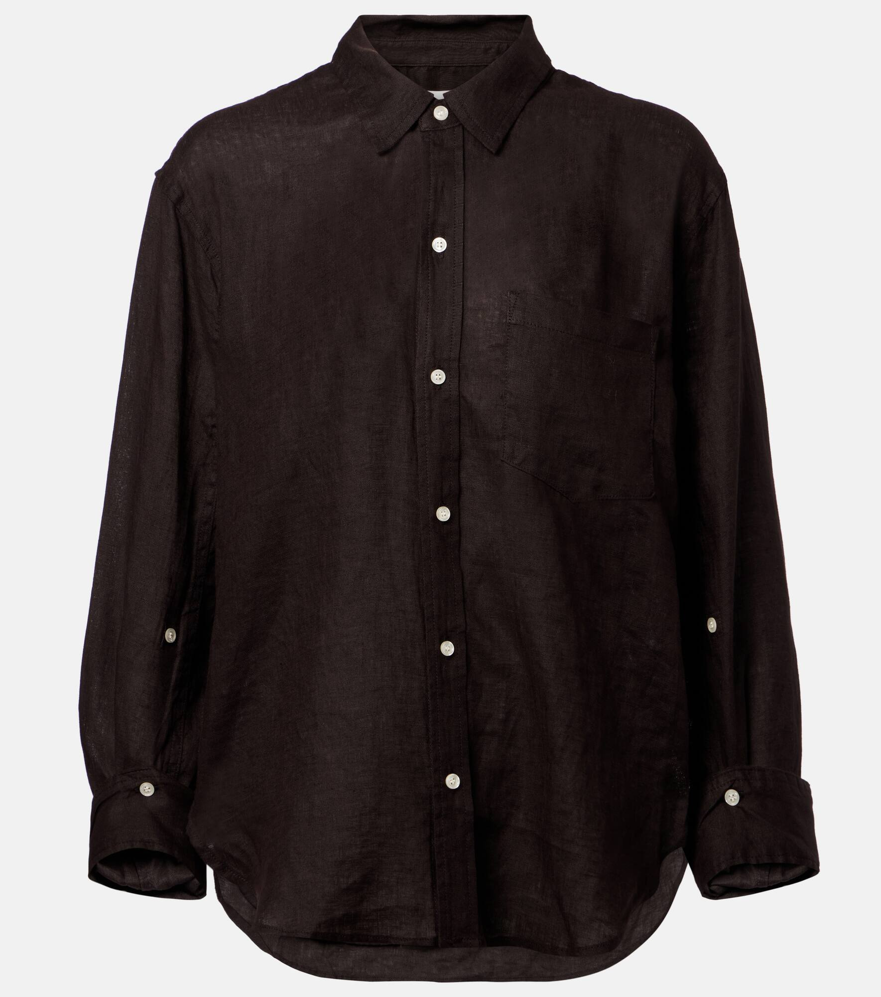 Kayla Shrunken Linen Shirt In Chocolate
