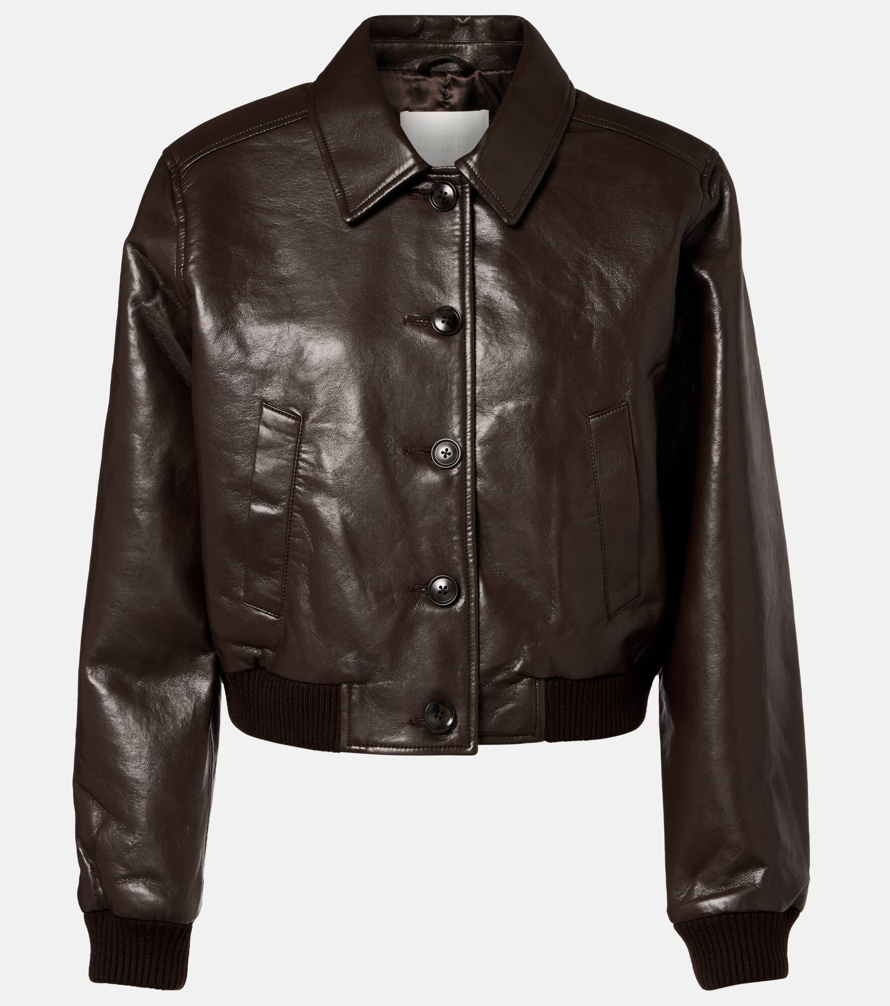Founded in 2003, Los Angeles label Citizens of Humanity has become synonymous with quality denim and ready-to-wear. Crafted from recycled leather, the Lola bomber jacket features a buttoned front, classic ribbed trims, and a shirting-style collar. Product Details - Material: 50% calf leather, 30% polyurethane, 10% viscose, 10% polyester - Care instructions: specialist clean - Made in India - Designer color name: Brown - Item color: brown - Lining: 100% polyester - Trim: 78% acrylic, 17% wool, 5% elastane - Contains non-textile parts of animal origin - Closure: buttoned front - Pockets: welt pockets, internal pocket - Cuff: ribbed - Hem: ribbed - Item number: P01111934 Size & Fit - True to size - Straight fit - Elasticated hem - Non-stretchy fabric - Slightly cropped - The model seen in the picture is 178cm-5'10" and wearing a size XS