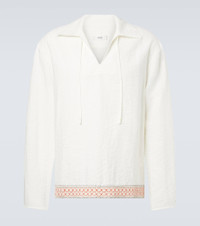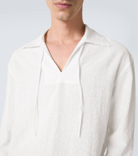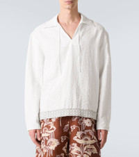 Clean lines and a muted aesthetic are the order of the day for Sydney-based resort and swimwear label Commas. Crafted from a breathable linen blend, this shirt features a self-tie V-neckline and is finished with a crochet-trimmed hemline. Product Details - Material: 65% linen, 35% polyester (recycled) - Care instructions: dry clean - Made in China - Designer color name: White - Item color: multicolor - Collar: classic (Straight point) - Closure: self-ties - Cuff: buttoned - Side slits - Item number: P01138105 Size & Fit - True to size - Without pleats in the back - Straight fit - Non-stretchy fabric - Falls below the hip - The model in the picture is 185cm-6'1" and wearing a size L