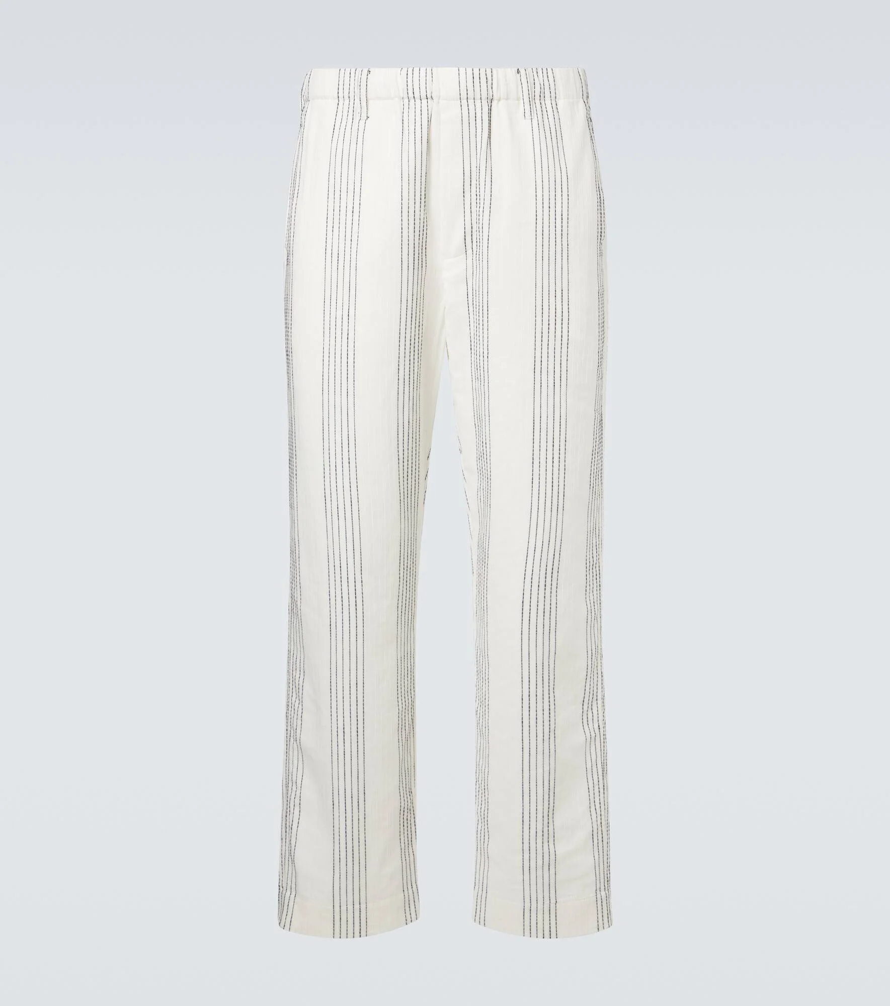 Clean lines and a muted aesthetic are the order of the day for Sydney-based resort and swimwear label Commas. The Kantha straight pants are made from pure cotton and feature a textured striped motif and an elasticated waistband. Product Details - Material: 100% cotton - Care instructions: dry clean - Made in China - Designer color name: Off White - Item color: white, black - Elasticated drawstring waist - Belt loops - Pockets: side slit pockets, back pocket - Fully lined - Lining: 100% cotton - Item number: P01138099 Size & Fit - True to size - Elasticated waist - Adjustable at the waist - Non-stretchy fabric - Straight leg - Height of model is 192cm-75.5" and wears a size L