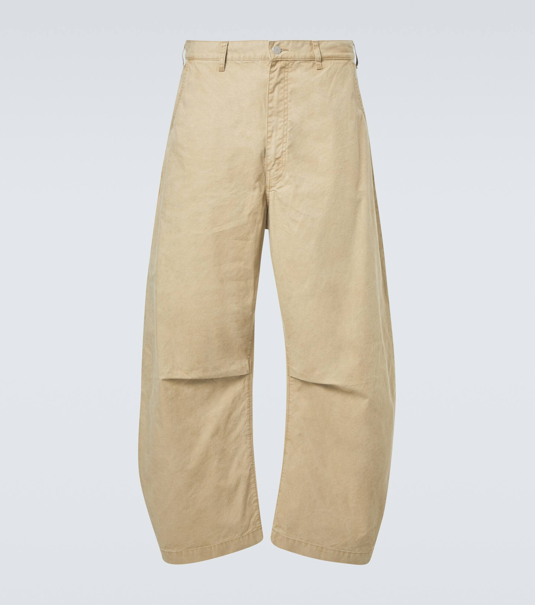 Mid-rise cotton barrel-leg pants