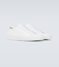 The Original Achilles Low sneakers from Common Projects come in a minimalist all-white leather silhouette resting on a rubber sole and are finished with the brand's signature coding on the outer sides. Product Details - Sole: leather insole, rubber sole - Toe shape: round toe - Upper: leather - Closure: lace-up - Designer color name: White - Made in Italy - Item number: P00454401 Size & Fit - True to size - Half sizes please take the next size up - European sizes
