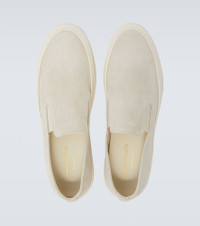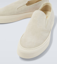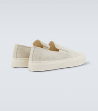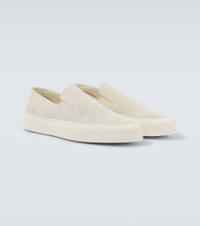 Designed in New York, Common Projects' minimalist footwear is handcrafted by expert shoemakers in the Marche region of Italy. These slip-on sneakers come in a minimalist suede silhouette resting on rubber soles. Product Details - Upper: leather (suede) - Lining: leather, fabric - Sole: leather insole, rubber sole - Toe shape: round toe - Made in Italy - Includes: shoe box - Designer color name: Off White - Item color: white - Item number: P01078503 Size & Fit - True to size - Half sizes please take the next size down - European sizes